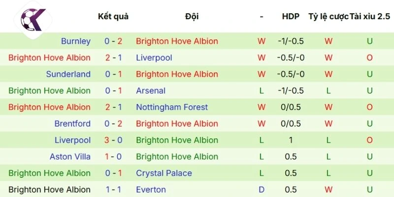 Phong độ lẫn vị trí của Brighton hiện tại lại hoàn toàn trái ngược. CLB chỉ để thua 1 và thắng tới 4 trong 5 trận mới nhất. Kết quả này giúp Mòng Biển xuất sắc đứng ở top 9 và hiện đội vẫn còn cơ hội tiến xa hơn.